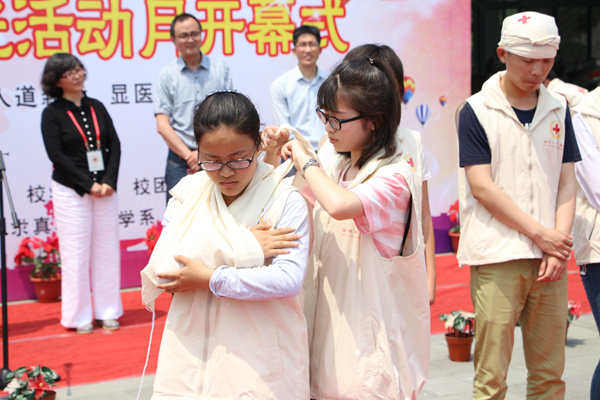 5月6日,我校举办“第69个世界红十字日”纪念活动暨医学院•护理学院、求真学院医学系第十届红十字阳光活动月开幕式。校党委副书记、校红十字会会长蒋云良出席活动并宣布红十字阳光活动月开幕,市红会办公室、我校职能部门、医学院•护理学院相关负责人,各学院师生代表和医学院阳光医疗服务团全体队员400多人参与了活动。