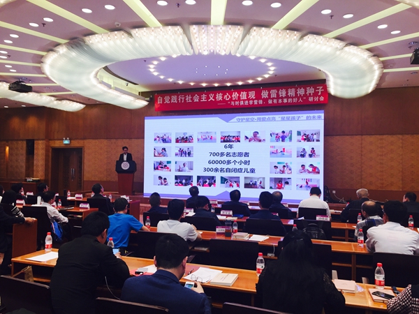 5月4日上午9:00,“自觉践行社会主义核心价值观,做雷锋精神种子——与时俱进学雷锋,做有本事的好人研讨会”在清华大学主楼召开。我校商学院关爱自闭症儿童志愿服务团指导教师汤晓晨受邀参加,并同与会代表分享700多名90后志愿者六年来的努力与坚持。