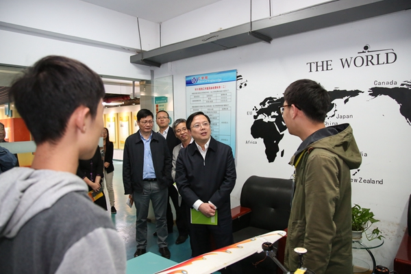 高屹一行第二站来到东校区32幢大学生创业孵化园,创新创业学院负责人向高屹一行介绍了学校大学生创业孵化园的总体情况。高屹先后走进MX航拍工作室、机器人研发团队、艺术设计众创空间等工作室,深入了解相关团队的运营情况,并亲切询问他们创业遇到的问题、困难等,对学校大学生创新创业和工作给予充分肯定,并对我校大学生创新创业工作提出新要求:一是要加大宣传力度,通过各种渠道宣传师院,宣传师院创新创业工作;二是要结合师院实际和湖州市相关优惠政策,深入研究,扎实推进,争取成为湖州市创新创业工作的主力军、排头兵;三是要积极调动广大师生创新创业热情,全校联动,营造浓厚的创新创业氛围,师院要走在全市创新创业工作前列,当好排头兵。