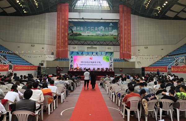 4月21日,体育学院在西校区燕英体育馆,举行了建院40周年庆典暨校友分会成立大会。原湖州师专党委书记、校长蔡清江到会祝贺,校党委委员、宣传部长杜宁出席,体育学院校友代表、退休教师代表、兄弟院校代表、在校师生近900人参加庆典。