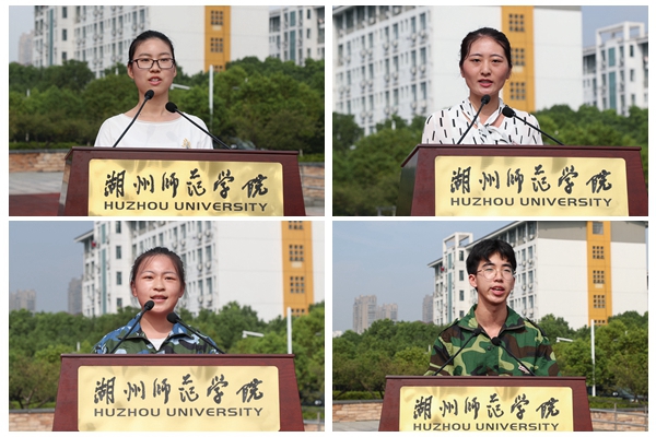 教师教育学院钱高艺同学和求真学院公共教研部周靖阳同学分别代表湖州师范学院新生和求真学院新生作了发言。他们表示,将好好规划自己的大学生活,严守校规校纪,勤奋刻苦学习,向学识渊博的老师请教,向成绩优异的同学学习,争做一名优秀的湖师学子。