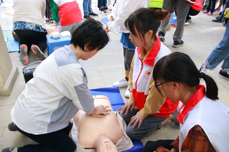 10月20日下午,由我校保卫处党支部联合学士府社区党支部主办,心雨36.7℃公益团队承办的社区红十字应急救护普及培训班在学士府社区文化广场开课。我校保卫处党支部书记担任活动主讲人,医学院的学生培训员在一旁辅助教学,志愿者们在场内引导秩序,共有近百位居民携老人、孩子参与其中。