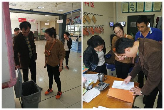 本次检查重点对中心、文印、住宿、物业、餐饮、门诊的办公区域、工作场所和操作间等地进行了随机抽查,围绕垃圾容器的放置、分类投放效果、各类台账的建立三方面情况开展。同时现场询问了部分垃圾专管员对垃圾分类工作的开展情况。总体情况较好,各部门办公区域、学生公寓值班室和外围、各餐厅就餐区、操作间和外围等地垃圾容器放置合理,标识清晰,投放精准,台账建立完善。但也发现一些问题,如个别部门可回收垃圾的去向备注不完善,有一处公共部位的垃圾出现混投现象。针对查出的问题,检查组现场进行了指导并要求即时整改。