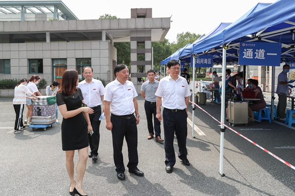 校领导们来到接待点亲切慰问了师生志愿者,对志愿者们的工作表示了关切和肯定。