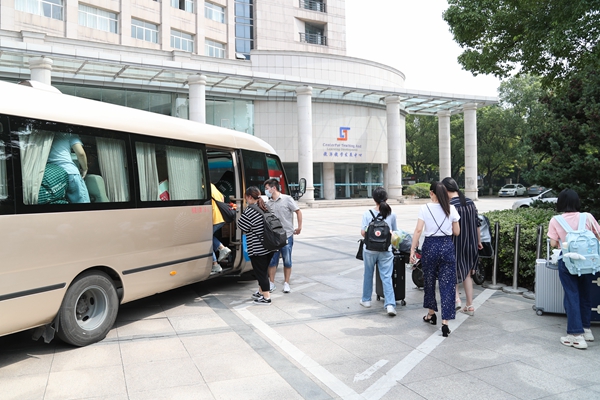 为了做好疫情防控工作,本学期实行学生分批返校。2016级至2019级研究生、本专科生将陆续在9月9日至11日返校。学校在东、西校区均设置了接待点,在高铁站安排了志愿者进行接站。学校在接待点附近安排了接驳车,将学生和行李运送至宿舍。