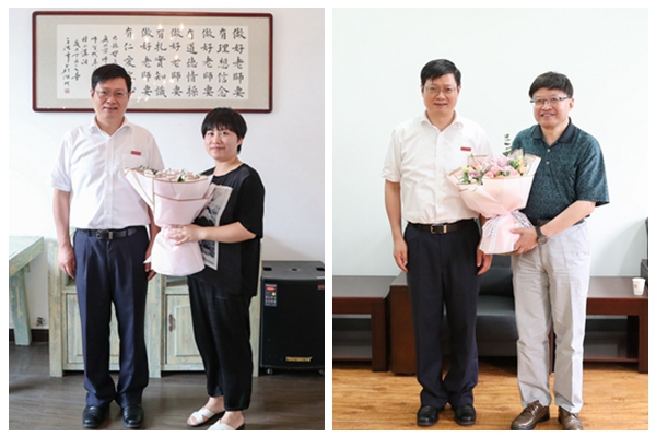在第36个教师节到来之际,校党委书记金佩华、校长蒋云良、副校长马志和,在党委委员,党委、校长办公室主任劳士健和人事处、相关学院负责人陪同下,分别走访慰问了生命科学学院王继栋、徐奇友,理学院刘太顺、外国语学院魏丽娜,社会发展与管理学院张建国、马克思主义学院李长成等教师代表。