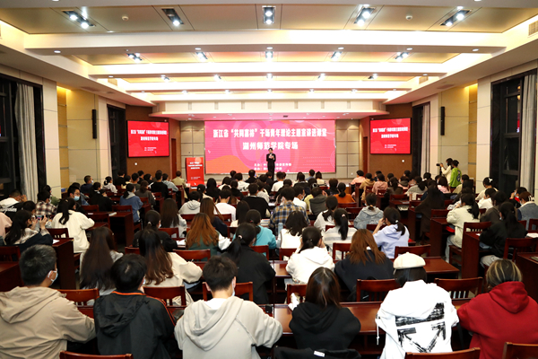 11月4日,浙江省“共同富裕”千场青年理论主题宣讲进课堂专场宣讲会在我校举行,湖州市委宣传部部务会议成员、社科院院长谢占强,校党委委员、宣传部部长杜宁出席,150名学生代表参加了宣讲会。