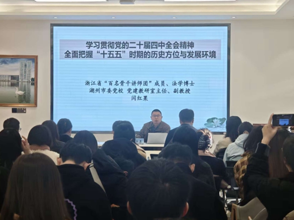 为全面提升辅导员队伍的理论素养、政治能力与综合素质,赋能新时代学生工作高质量发展,11月20日上午,我校在明德楼一楼党建展厅举办了“承续育人成效,锚定发展坐标——面向‘十五五’的使命与担当”为主题的辅导员发展论坛。本次论坛特邀湖州市委党校党建教研室主任闫红果教授作专题报告,全校60余名辅导员参加学习。