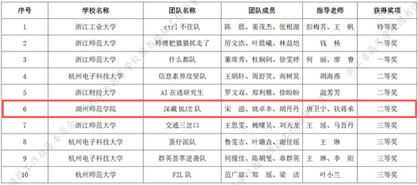 11月15日,由浙江省高等学校图书情报工作指导委员会主办的浙江省大学生“AI+信息素养”大赛暨2025年大学生“AI+信息素养”大赛浙江赛区决赛在杭州电子科技大学落下帷幕。图书馆联合教务处、研究生院积极组织学生参赛,经过校赛、省赛淘汰赛的层层选拔,最终研究生团队“深藏BLUE队”成功晋级省赛决赛,并在激烈角逐中脱颖而出,荣获研究生组二等奖,名列省内硕士点高校第一名。唐卫宁教授与钦蒋承老师作为该团队的指导教师,荣获“优秀指导教师奖”,校图书馆荣获“优秀组织奖”,展现了图书馆“AI+信息素”教育教学能力和竞赛组织能力。