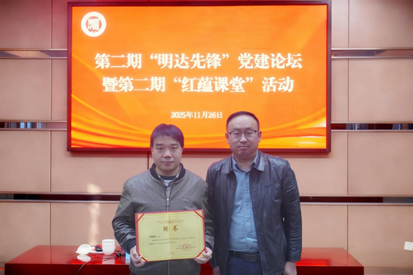 程龙在总结时表示,本次专题报告为组织员开展党建研究工作提供了清晰方法路径,对破解党建研究难题、提升实务工作水平具有重要指导意义。他建议全体参会人员积极推动党建研究与工作实践深度融合,持续提升履职能力,充分发挥组织员先锋引领作用,为高校党建工作高质量发展贡献力量。讲座结束后,程龙为肖剑忠颁发“红蕴人文”组织员工作室导师聘书。