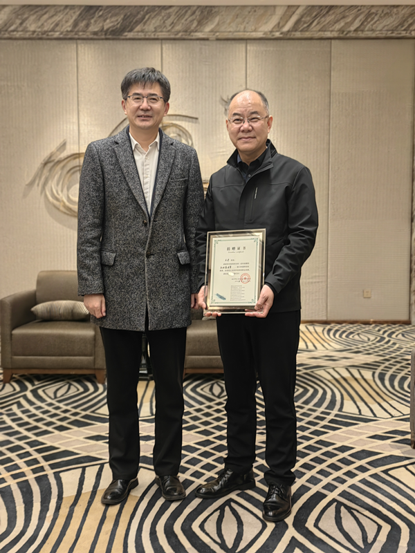 座谈会上,李庆峰代表学校教育发展基金会向王平校友颁发捐赠证书,并赠送由我校教师创作的书法作品“丹心致远”。