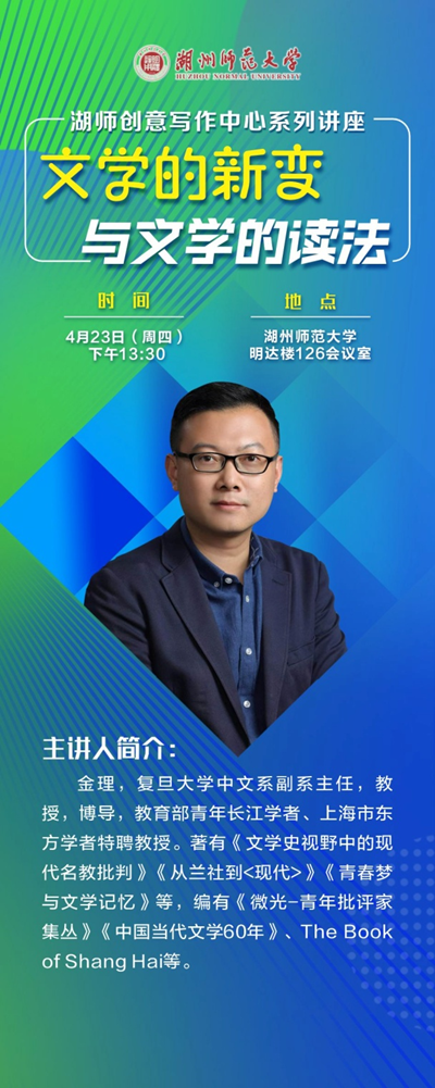 主讲人简介:金理,复旦大学中文系副系主任,教授,博导,教育部青年长江学者、上海市东方学者特聘教授。著有《文学史视野中的现代名教批判》《从兰社到<现代>》《青春梦与文学记忆》等,编有《微光-青年批评家集丛》《中国当代文学60年》、The Book of Shang Hai等。