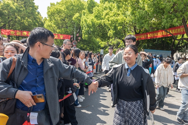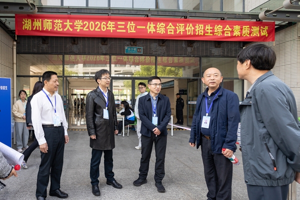 4月19日,我校2026年“三位一体”综合评价招生综合素质测试在东校区32幢教学楼举行。校长盛况、党委副书记丁敢真、副校长舒志定到测试现场检查指导各项工作开展,省、市教育考试院相关领导对测试工作流程进行巡视督导。